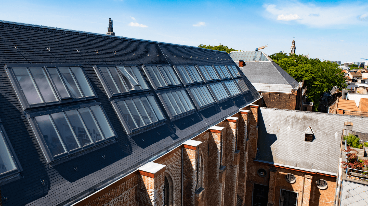 Tijdens de werken werden in totaal acht daken gerestaureerd, met uiterst respect voor het historische karakter en de originele opbouw. Zo werd het zinken roevendak volledig in ere hersteld, met enkel een extra isolatielaag als toevoeging.